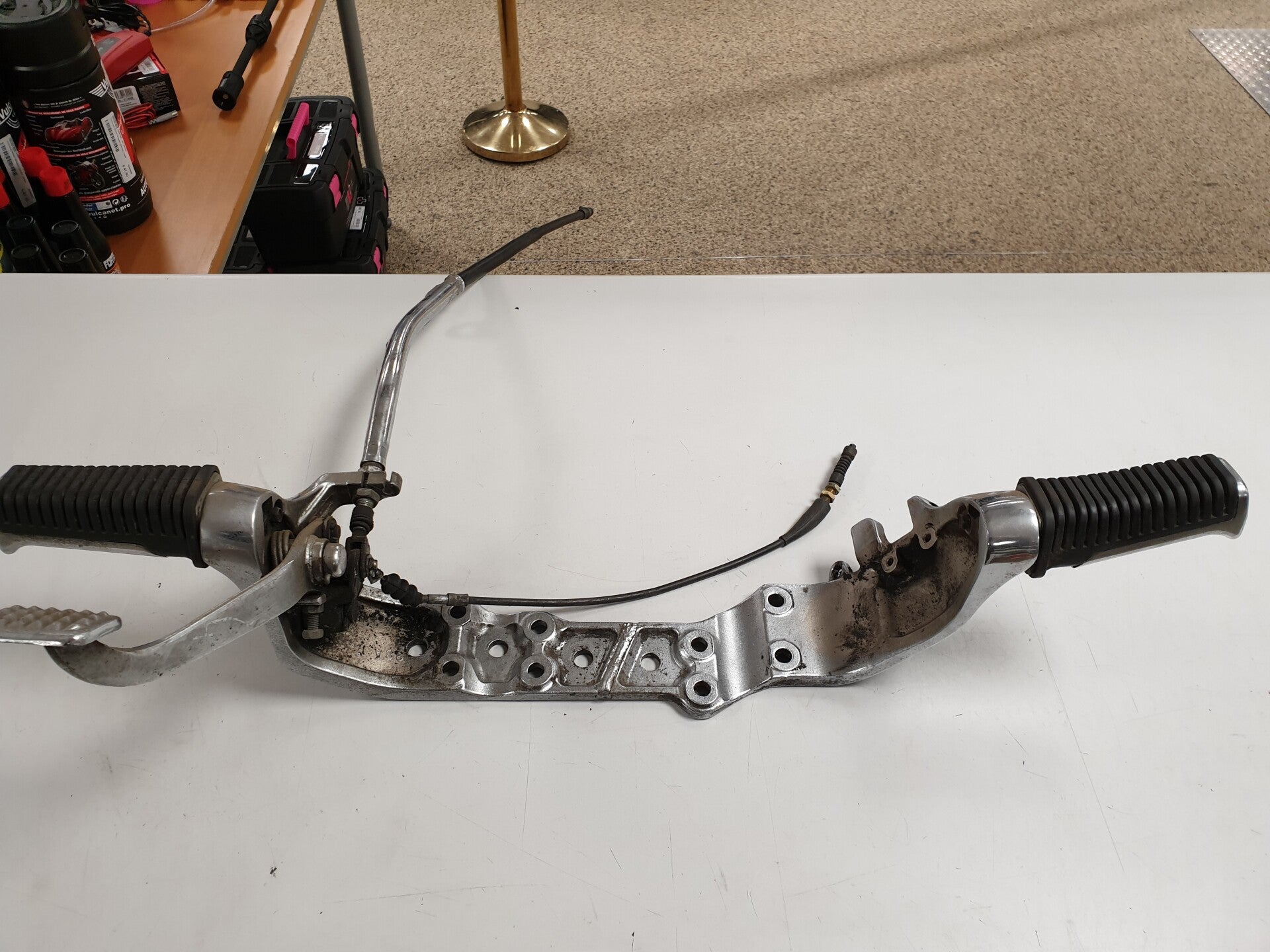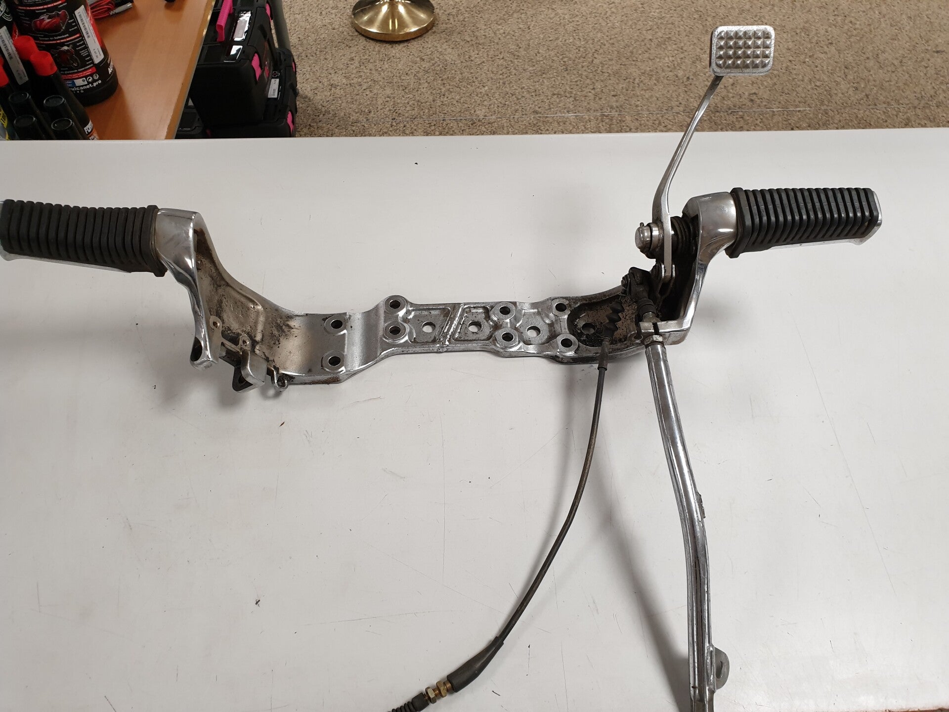 Gebruikt en compleet met voetsteunen, rempedaal, remkabel enz.